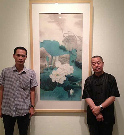 318艺术商城总经理刘振文与关山月美术馆馆长陈湘波及其作品